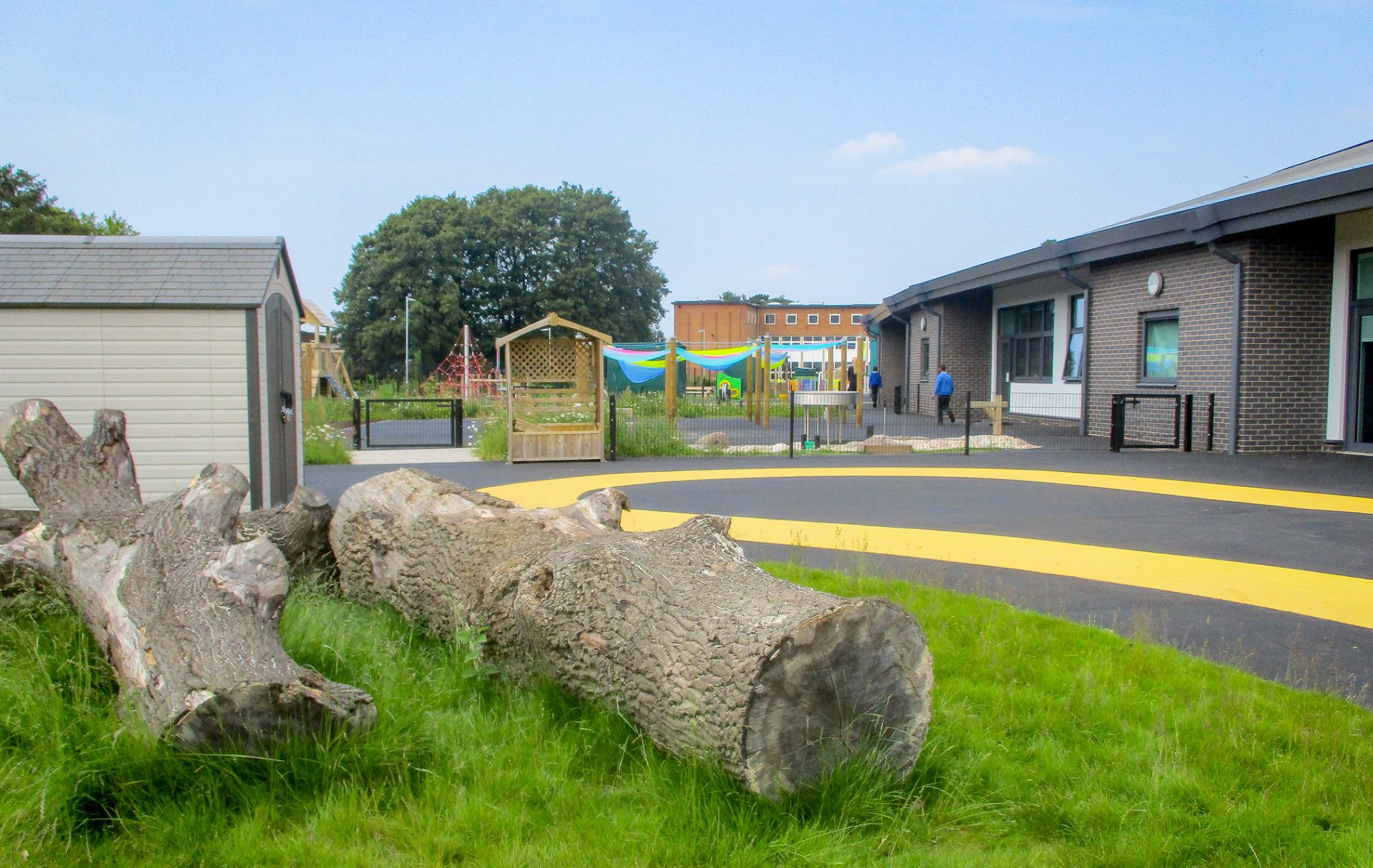 The site is steeply sloping at its southern end where it forms the edge of the Leicester conurbation, and we were able to use this to our advantage to create a variety of contrasting learning spaces to enrich the children’s experience. Rain gardens, a key component of the Sustainable Drainage System (SuDS) strategy, bring a ‘wild play’ experience in close to the school building and into the daily experience of the children. The path of water through the site to the large attenuation pond may be followed and enjoyed by children and staff alike.
