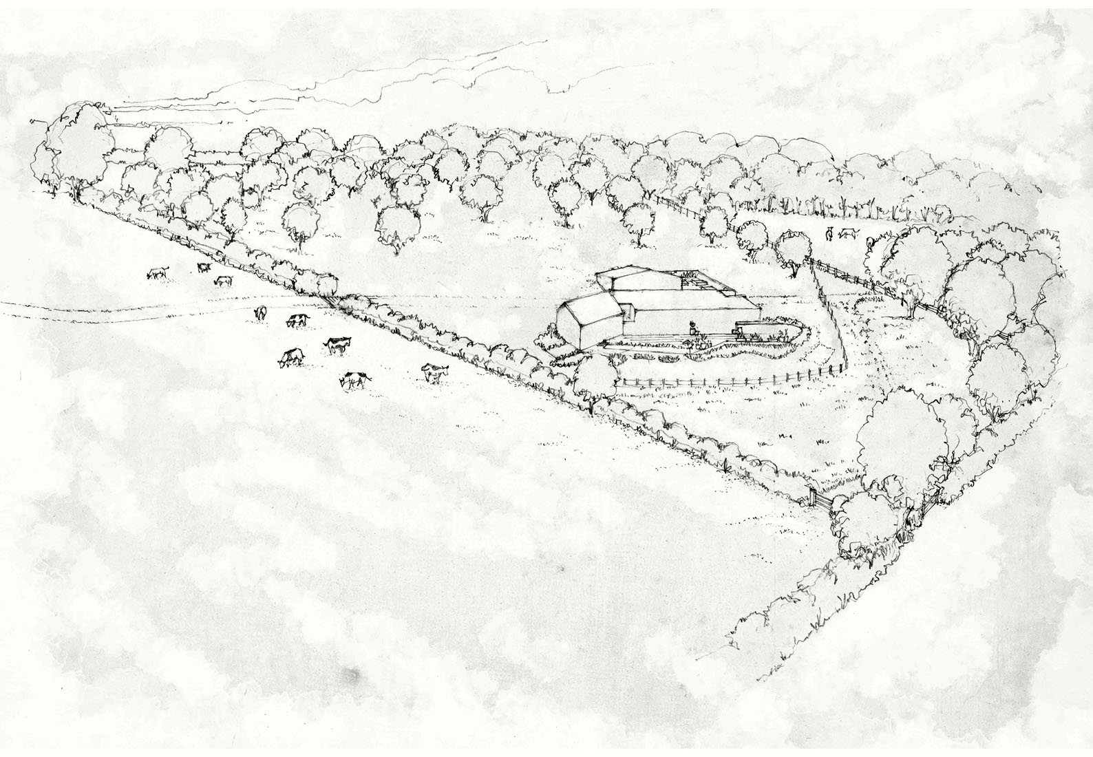 from Finland to Northamptonshire. The landscape strategy for ‘setting’ the dwelling has been informed by a ‘Finnish spirit’, heralding a simple, honest and respectful approach and an integration of the home, the forest and the field.