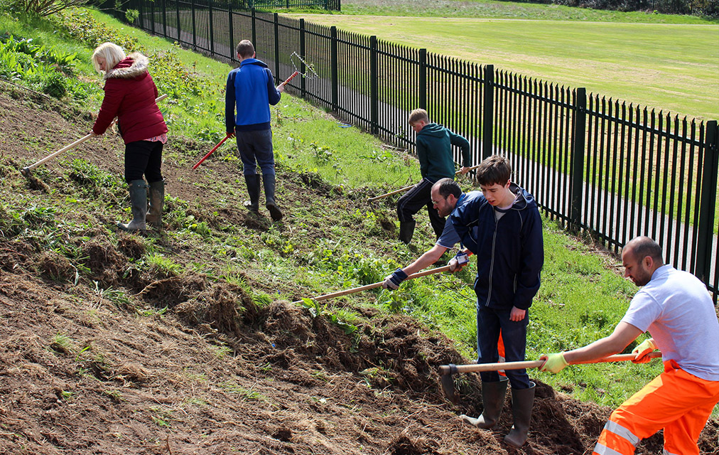 We continued to work with the school, as it converted to academy status, to further improve the ‘learning landscape’ and develop the ‘Outdoor Learning Environment’ (OLE). This work included seasonal activities like dead hedging, willow weaving, bulb planting and the sowing of wildflower meadows, involving both the children and staff. We expanded the existing footpath network, especially in the woodlands, to provide more opportunities for ‘woodland’ play. We also introduced innovative features like a horticultural area with a geodesic growing dome, a bird hide, and a ‘fire pit’.