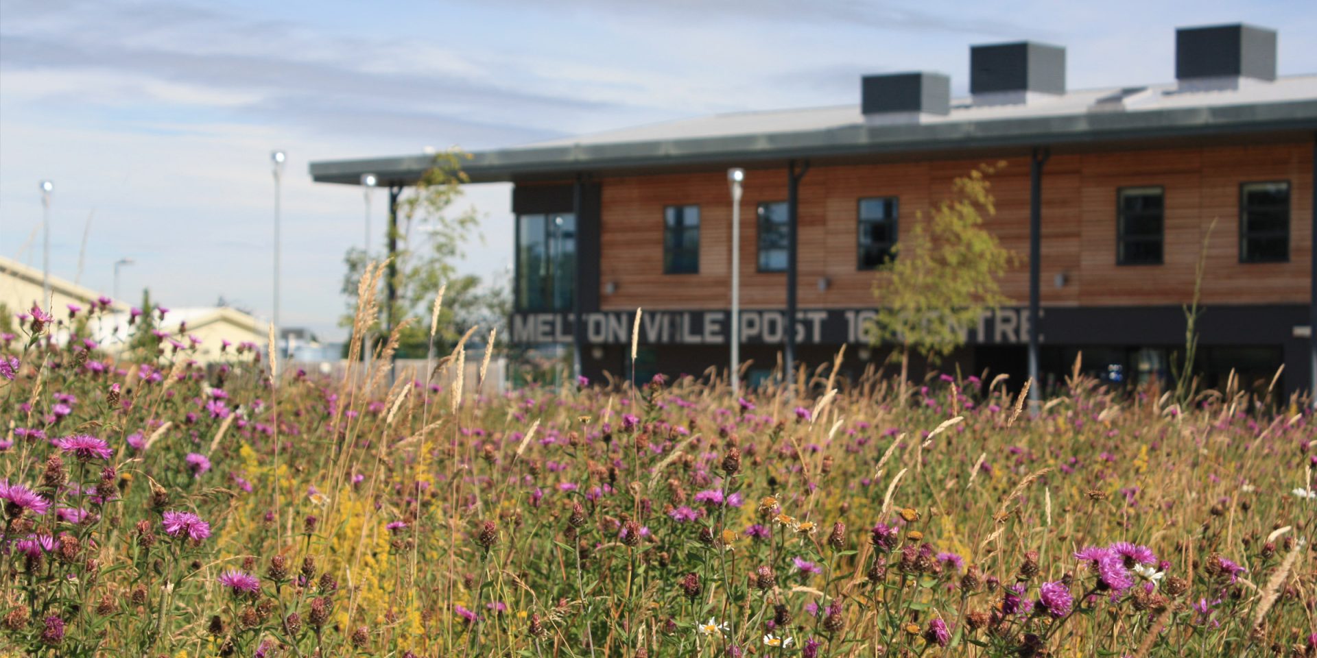 MV16 is a new school catering for Post-16 students in the Melton Mowbray area. The site lies on an elevated plateau off the A6, south of Melton Mowbray. DSA were involved from the outset and, working with the client and design team, introduced the idea that the whole school landscape should be usable for teaching and learning. The building location was adjusted to enable an almost totally ‘above ground’ Sustainable Drainage System (SuDS)/Water Sensitive Urban Design (WSUD) solution. A planning condition requiring a Landscape Management Plan (LMP) for the site was imposed.